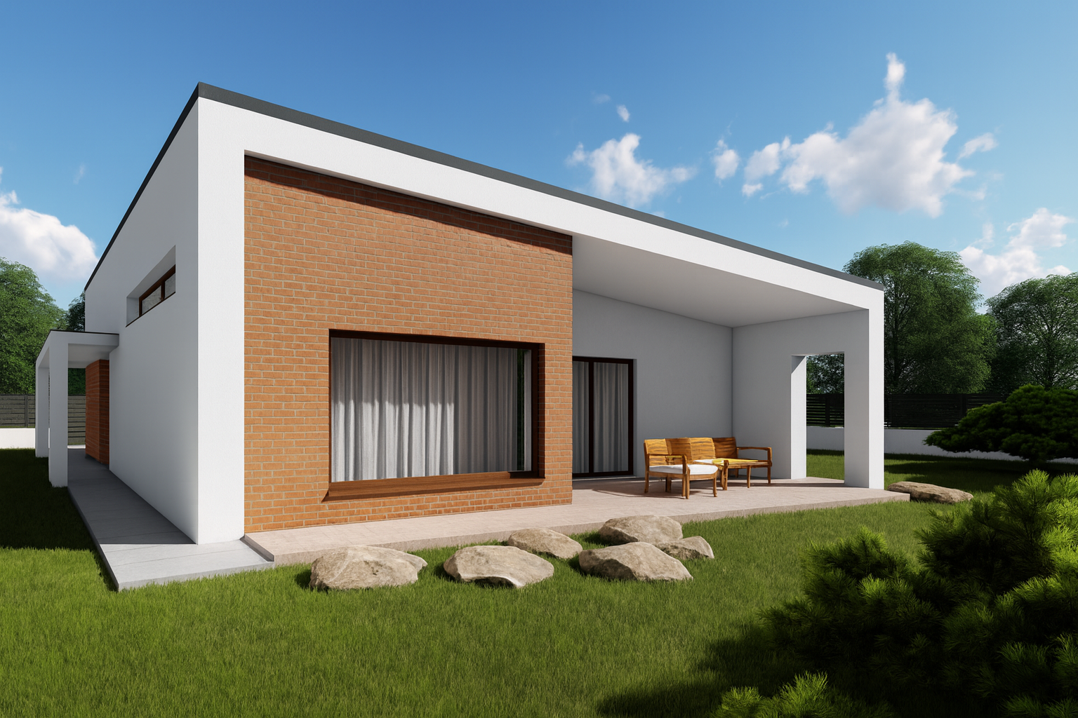 Dominantou domu je výrazné prepojenie obývacieho priestoru s vonkajšou terasou, ktoré prirodzene rozširuje obytný priestor a vytvára ideálne prostredie pre každodenný život aj oddych.