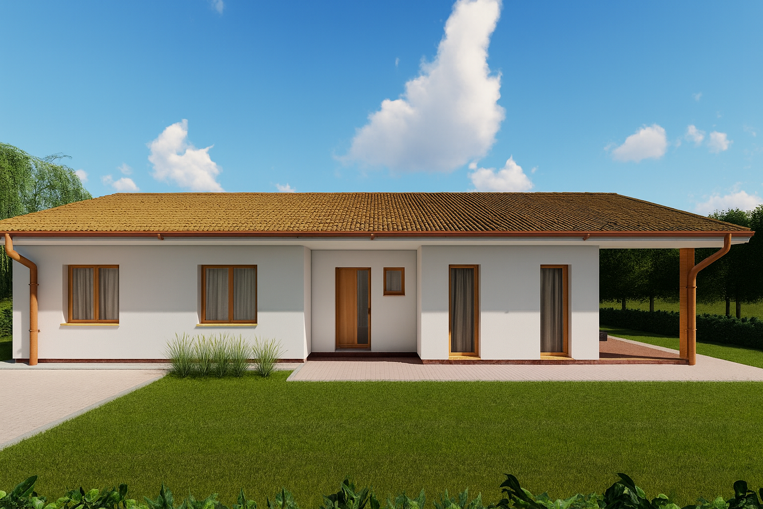 House 18 je moderný 4 izbový rodinný dom, ktorý stavia na jednoduchosti, prehľadnej dispozícii a maximálnej funkčnosti. Vďaka centrálnej chodbe vedúcej stredom domu sú všetky miestnosti výborne prístupné, čo zvyšuje komfort každodenného bývania a logiku pohybu v interiéri.