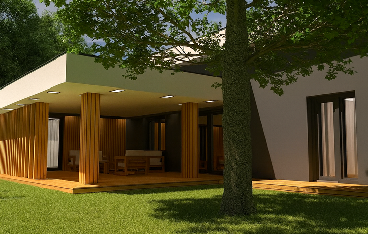 Jednou z najväčších predností domu je priestranná prestrešená terasa s výmerou až 60 m², ktorá slúži ako prirodzené rozšírenie obytného priestoru. Terasa je prístupná z troch častí domu – zo spálne, detskej izby a obývacej izby, čo zvyšuje komfort a variabilitu jej využitia.