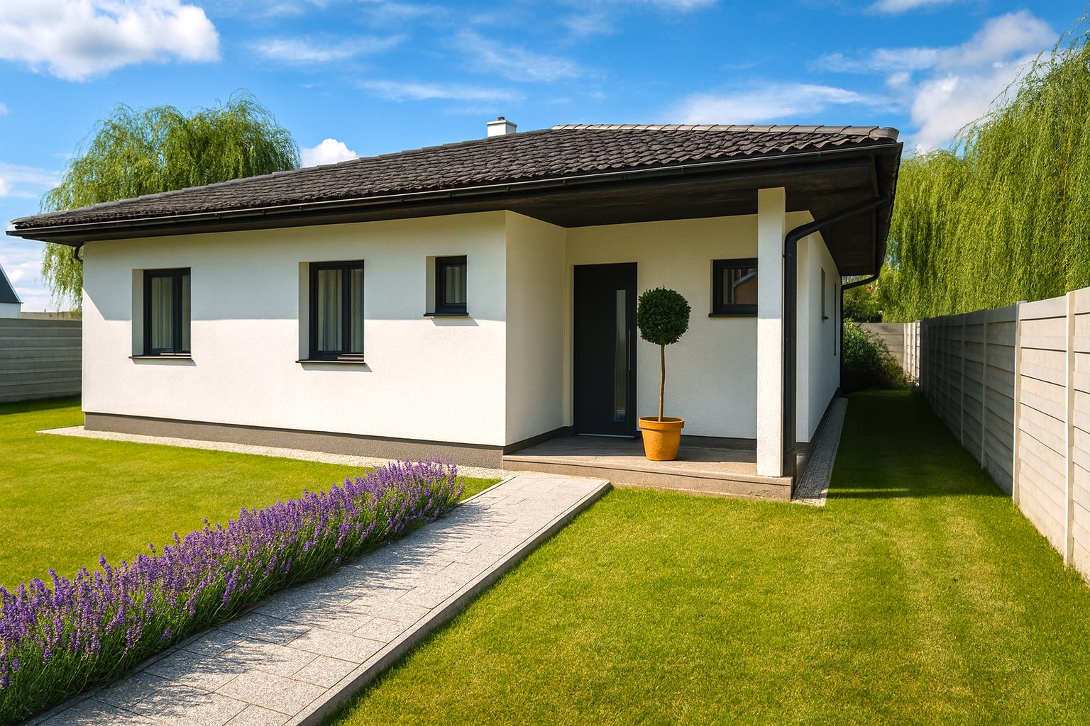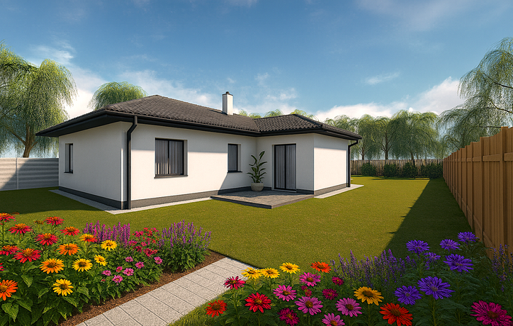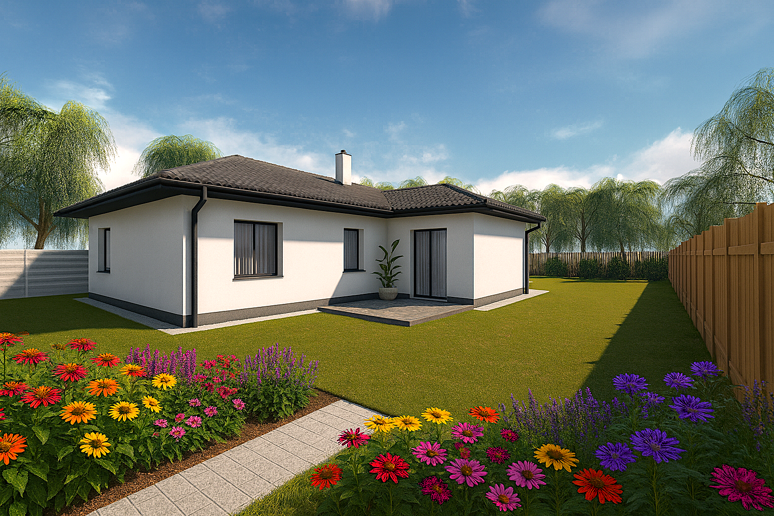 ✔ Tvar domu do „L“ zabezpečuje prirodzené rozdelenie dennej a nočnej časti – ideálne pre rodiny, ktoré chcú súkromie aj v čase najväčšieho ruchu.