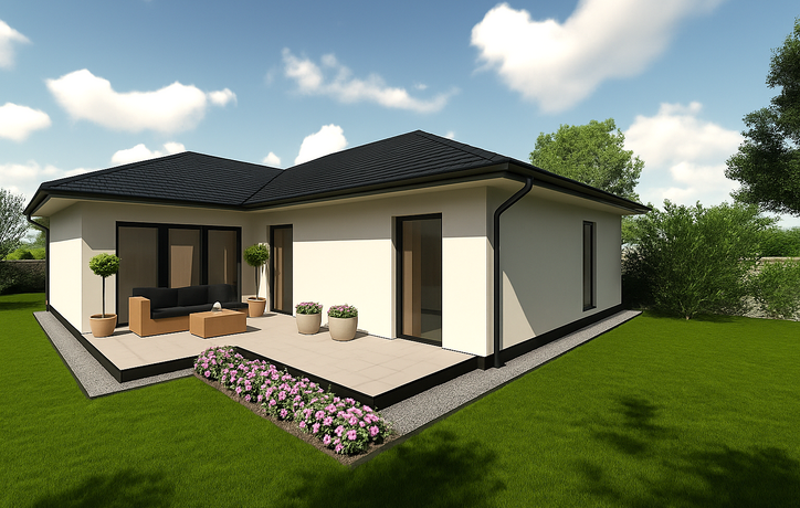 K projektu patrí krásna 25,47 m² terasa, dostatočne veľká na rodinné posedenia, letné grilovačky aj relax pod holým nebom. Prirodzene prepája interiér s exteriérom a dodáva domu jedinečnú atmosféru.