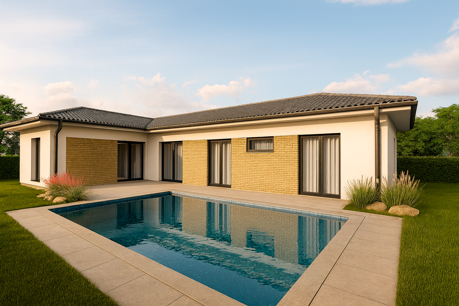 ✔ Dom pôsobí svetlejšie, vzdušnejšie a pôsobivo prepojuje interiér so záhradou.